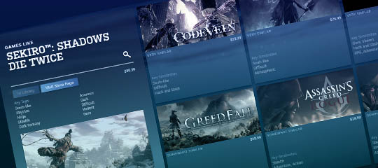 Select a game and discover others like it, from close matches to little-known but well-loved titles. Explore a path through the depths of Steam, charting a deep dive of your very own.
